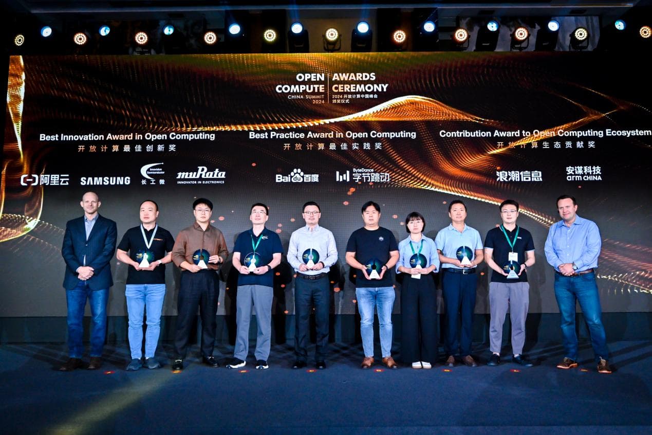 On August 8, OCP and OCTC gathered industry technology pioneers to host the highly anticipated Open Compute China Summit, where the Open Compute Best Innovation Award, Best Practice Award, and Ecosystem Contribution Award were introduced for the first time. At the event, IVS, Alibaba Cloud, Samsung Electronics, and Murata received the Open Compute Best Innovation Award; Inspur Information and Arm Technology won the Open Compute Ecosystem Contribution Award; while Baidu and ByteDance were honored with the Open Compute Best Practice Award. These awards aim to recognize community members who have made outstanding contributions to the field of open computing.
