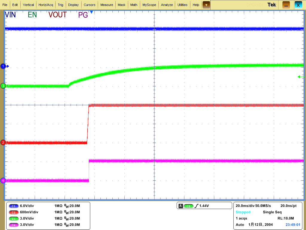 Finally, using the design tool provided by IVS, appropriate output capacitors are selected for VDDQ, VTT, and VPP. Here, VDDQ uses six 22uF ceramic capacitors. VTT uses one 4.7uF and one 22uF ceramic capacitor in parallel. VPP uses one 1uF and one 47uF ceramic capacitor in parallel. With this, the key parameters for this application are determined. The corresponding measured waveforms are shown below.