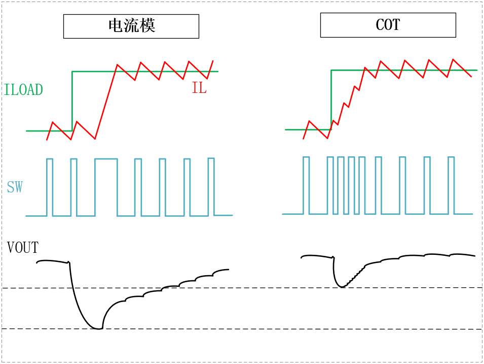Figure 2 Schematic Comparison of Transient Response: Current-Mode Control vs. COT Control Mode -