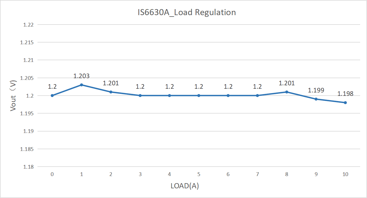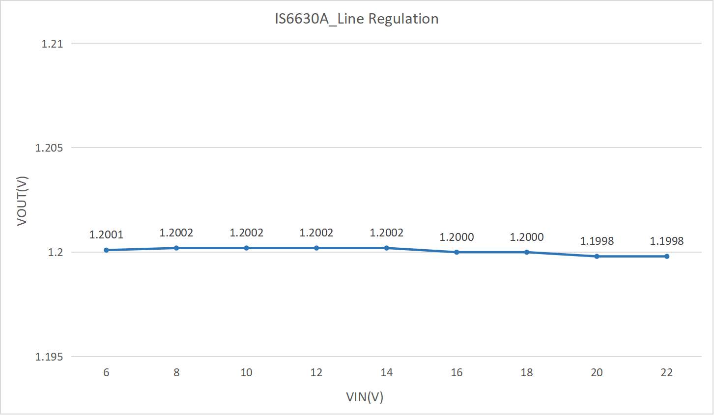The IS6630A/C/D incorporates a slow digital integrator that continuously corrects the reference voltage REF, thereby improving output voltage accuracy and eliminating the half-ripple deviation inherent in COT. This digital integrator also gives the IS6630A/C/D good linearity, achieving output voltage accuracy as high as ±1% under different load currents and input voltages.