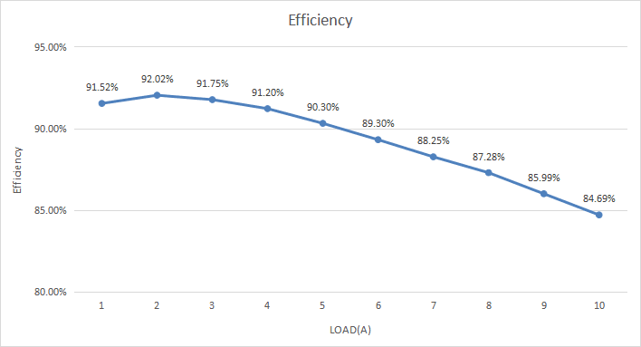 - Efficiency can exceed 92% across the load range under conditions of VIN=12V, VOUT=1.2V.