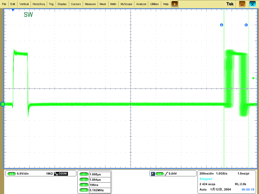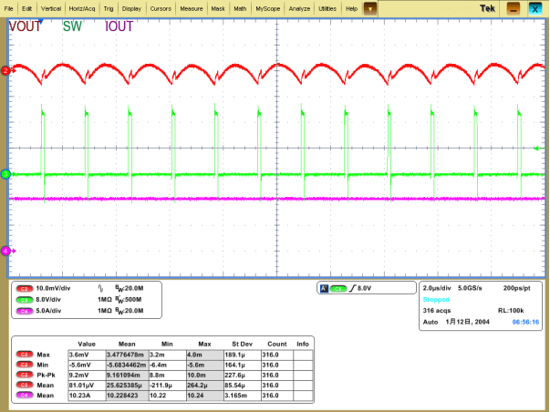 Vo Ripple: VIN=19V VOUT=1.2V, LOAD=10A, PKPK of VOUT=10mV